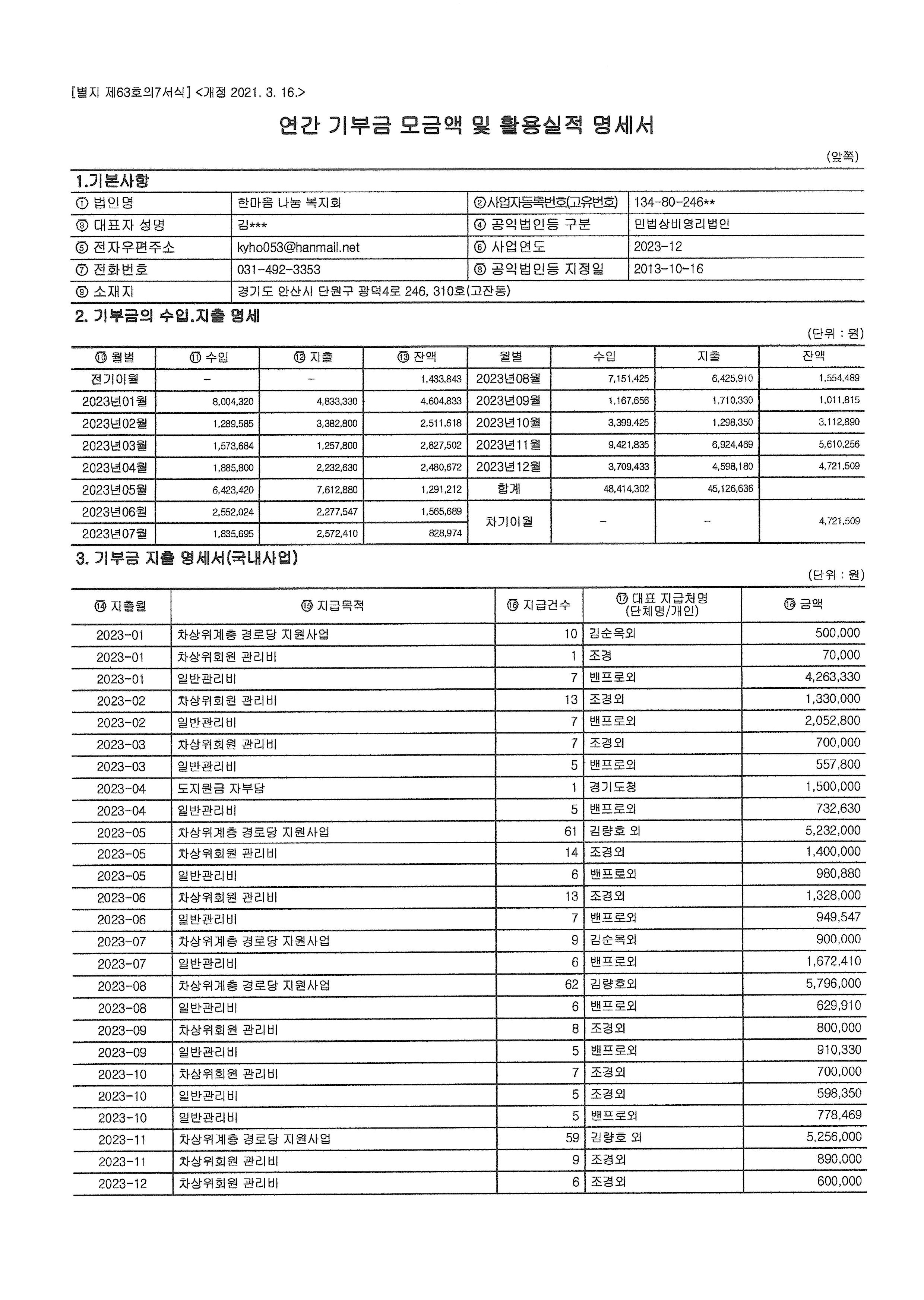 2023³â ¿¬°£ ±âºÎ±Ý ¸ð±Ý¾× ¹× Ȱ¿ë½ÇÀû ¸í¼¼¼