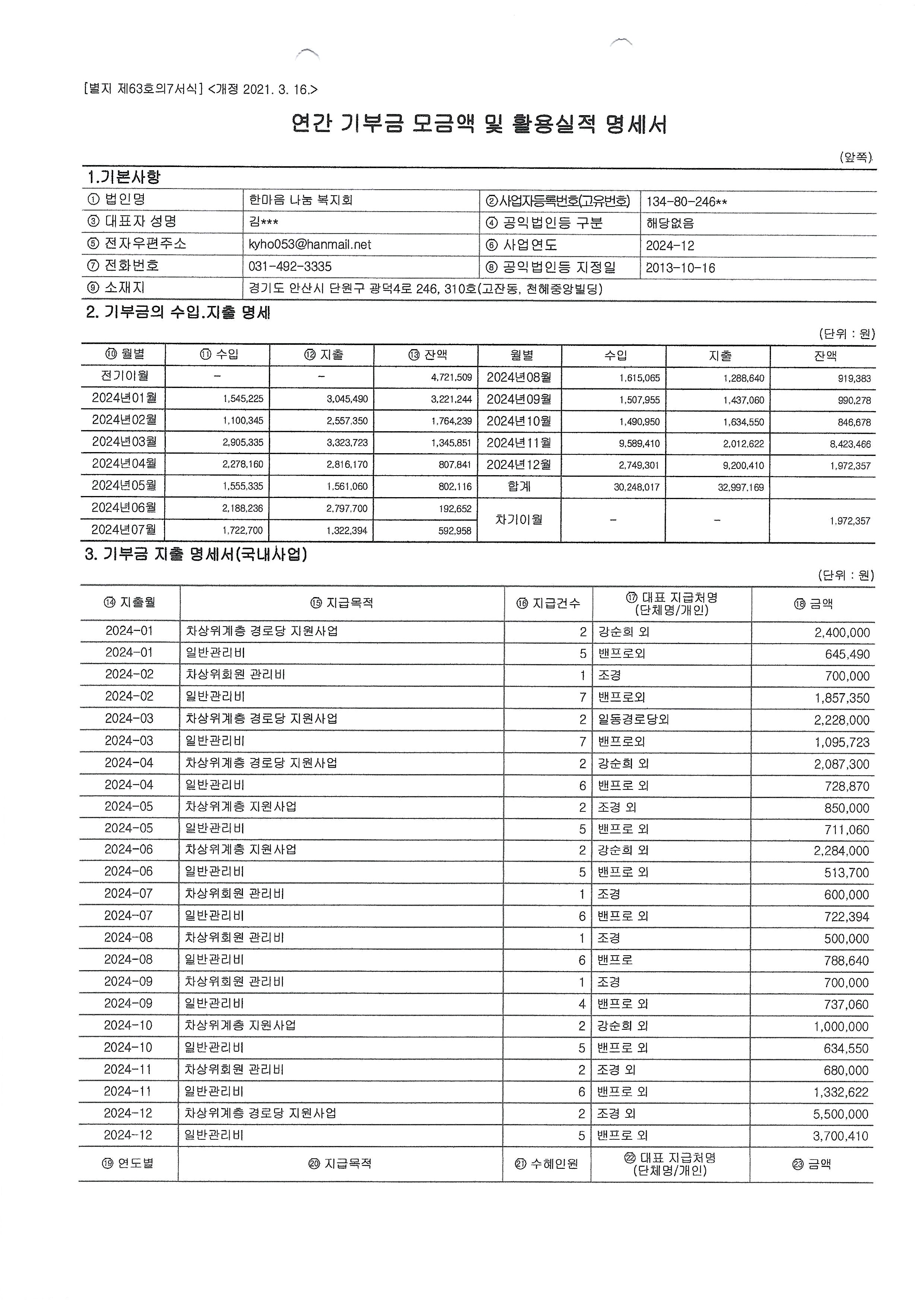 2024³â ¿¬°£ ±âºÎ±Ý ¸ð±Ý¾× ¹× Ȱ¿ë½ÇÀû ¸í¼¼¼